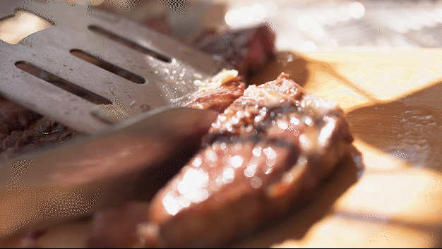 大きいお肉を焼いていて焼き具合を確認したいとき、お箸やターナーに比べて安定して確認することができます。